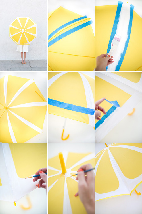 西瓜雨伞和奇异果雨伞用同样的方式制作,根据图案的不同调整胶带的造型。