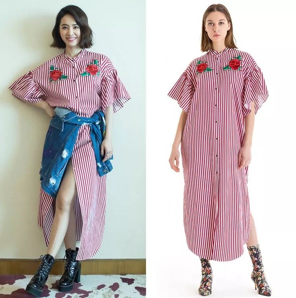 如果你手中没有这样的长款衬衫裙,用短款白衬衫和半裙自制一件“马思纯”同款也完全没问题。打造同色系亦或是撞色,都会带来刚柔两股气流冲撞的惊艳!