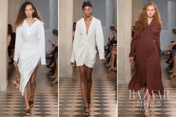 衬衫裙十分常见,所以想用衬衫裙赢下春天这场比美的胜仗,设计感自然十分重要!Jacquemus的2018春夏系列就采用了拧结、开衩等各种手法为衬衫裙们增加设计感,立志让每位穿上它们的人都能秒变仙女~