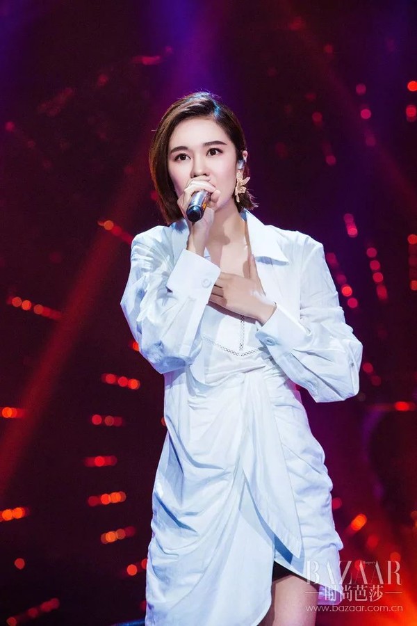 郁可唯也同样穿着这件衬衫裙上了《歌手》,大方展示了自己长到天际的腿,简直可以说用美颜和歌声双重打动听众了~