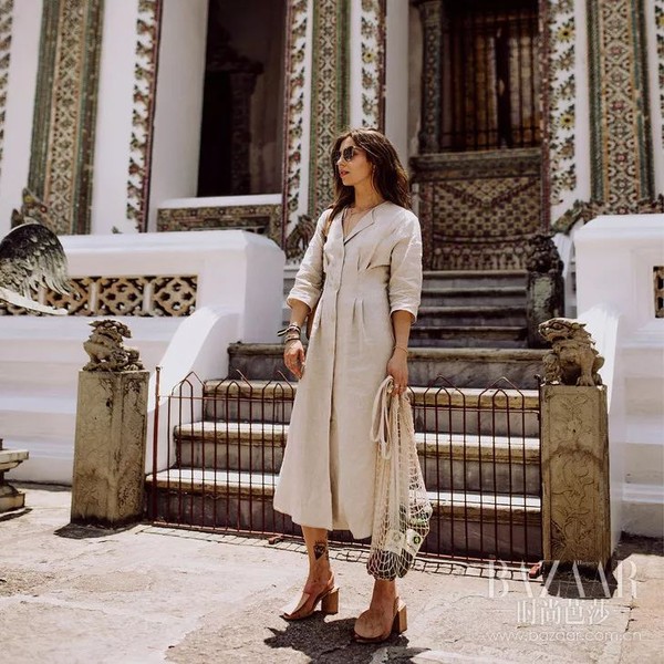 如果更想体现女性的柔美,就可以把裹腰的位置提得更高一些,外面再扎上一条柔软的腰带!建议选择轻薄质地的衬衫裙,更能在风中带起飞扬的裙摆,让整个人都露着仙气儿~