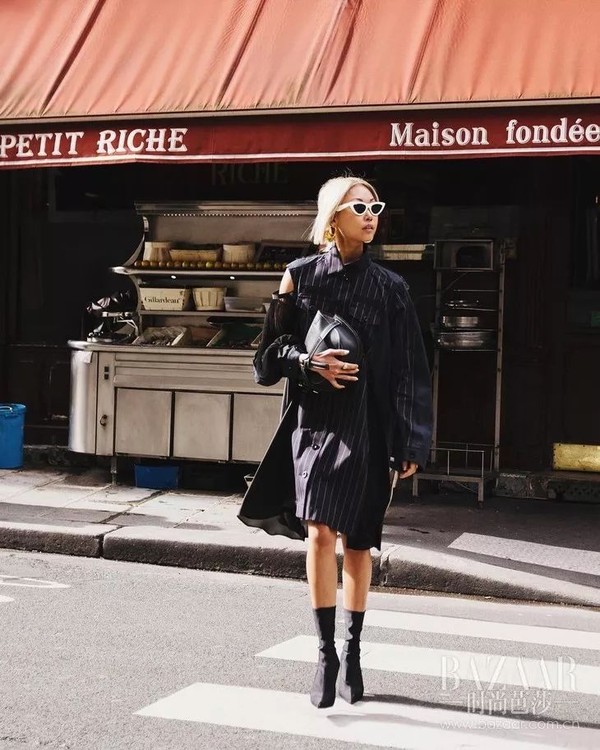 除了女明星们所选择的这些元素,你也可以在衬衫裙上加入一些拼接、解构等“时装精”们酷爱的元素,脚上再踩一双袜靴,分分钟也能变“时装精”啦~