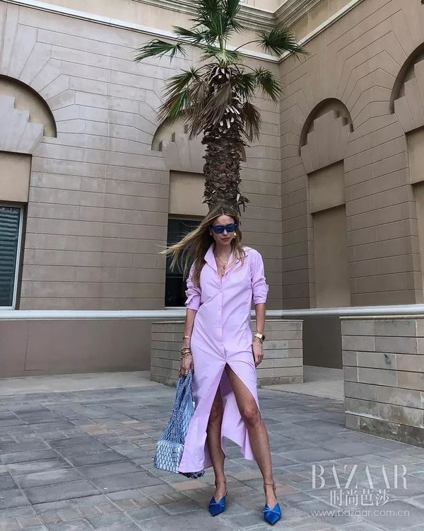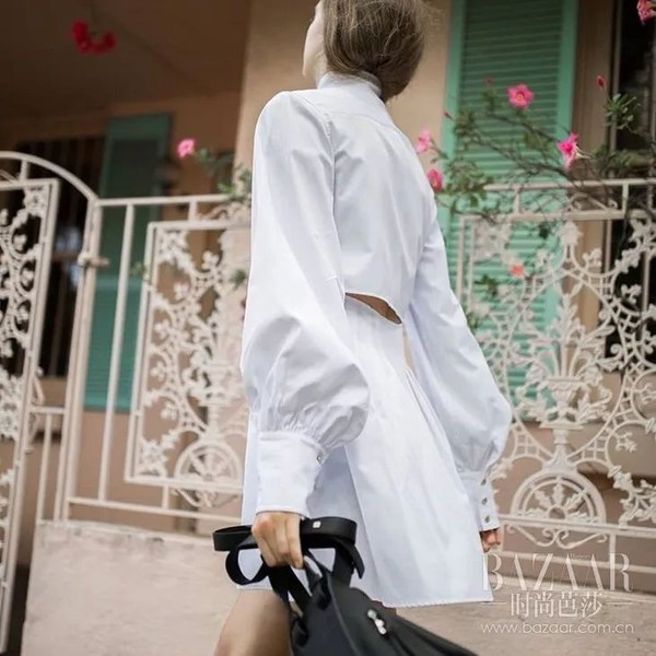 自带设计感的衬衫裙往往可遇不可求,这时候就要让各种普通的衬衫裙来大显神功!一条触手可及的简洁衬衫裙随便一上身也能光彩过人,秘密就在于下摆解开的扣子。大胆地将双腿展露出来,不仅可以拉长上下身的比例,还会显得整个人干练洒脱~