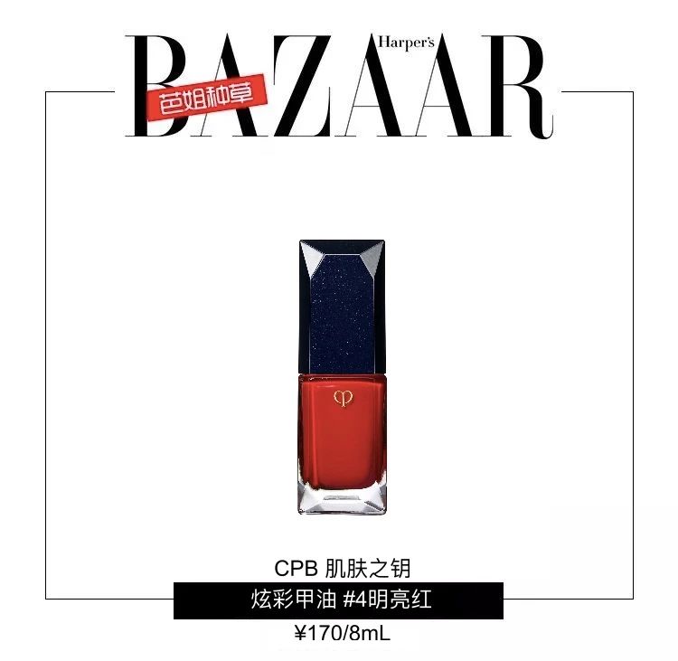 不要害怕甲油的光泽不如美甲店的光疗甲,这款甲油只需要涂抹一层,就能展现饱和的光泽色彩,明亮的红色也很适合婚礼的氛围。