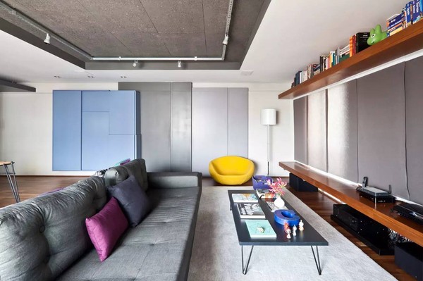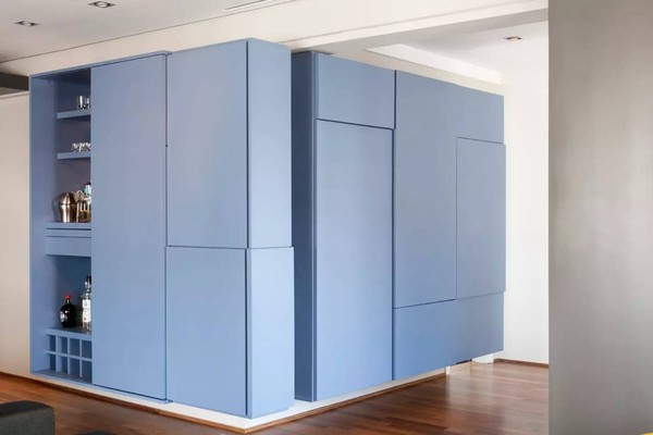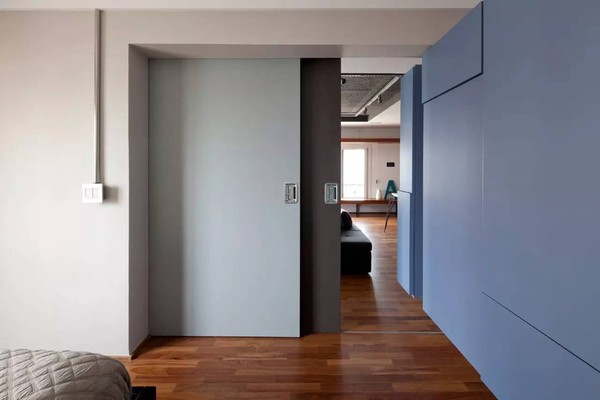 时下备受大家关注和喜爱的滑动门在这里发挥了完美功效,不仅分隔了公共区与私密区,并且隐藏了两者之间的通道,功能性与趣味性并存
