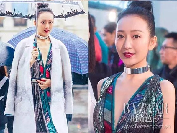王鸥的银色Choker搭金属色百褶裙,真是吸引到芭姐了!一把透明色的雨伞也是炒鸡时髦!请问什么唇色才可以搭配的上她这么时髦的一身金属色系女王百褶裙装?非她嘴上的暗红系的柔雾唇莫属了!与她裙子上的暗红色印花交相辉映,超显气场!