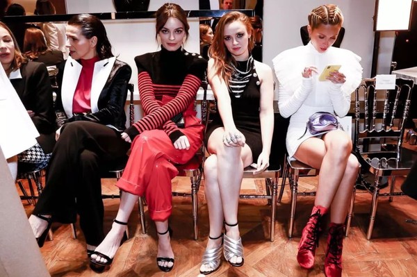 出生于1997年千禧时代演员如Emma Mackey(红黑条纹衣服),因饰演电视剧Sex Education里的叛逆高中生形象而出名,同样落座秀场。