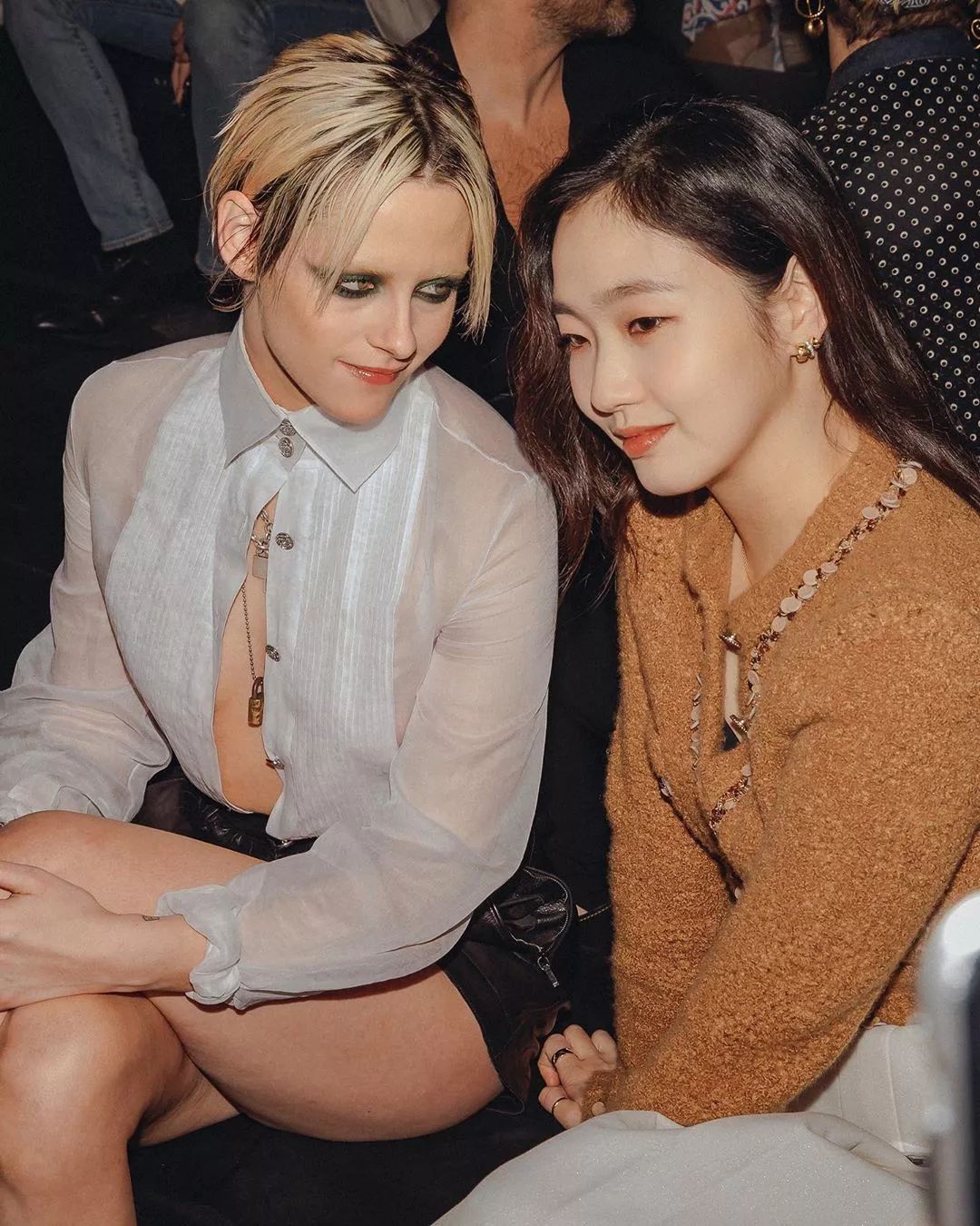 和拥有欧式大双眼皮的Kristin一同合照,金高银清透的眼妆也丝毫不逊色,很好的诠释了有的时候less is more,眼妆色调与服装完美统一,尽显知性魅力。