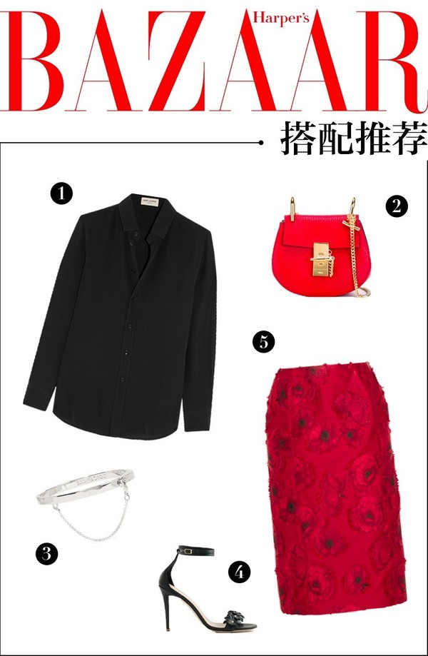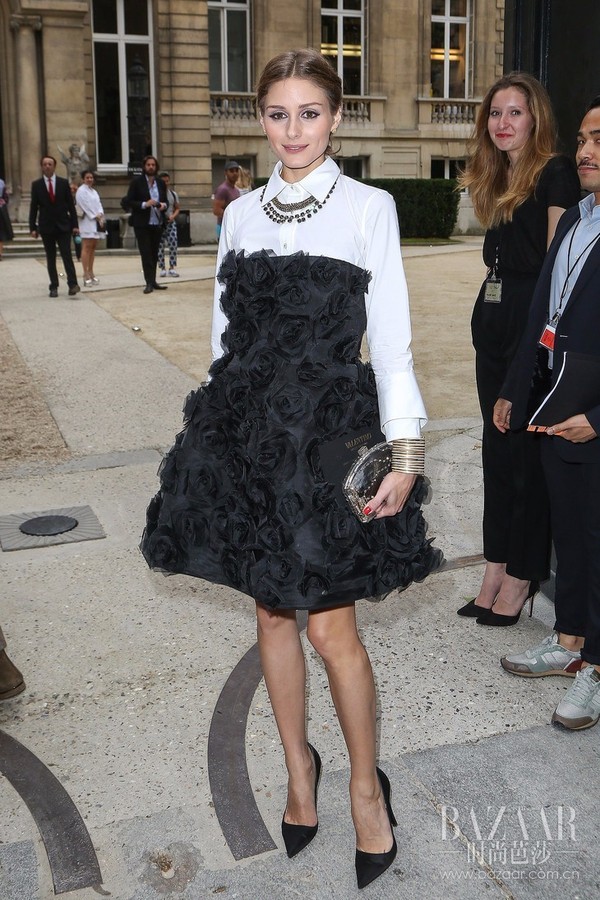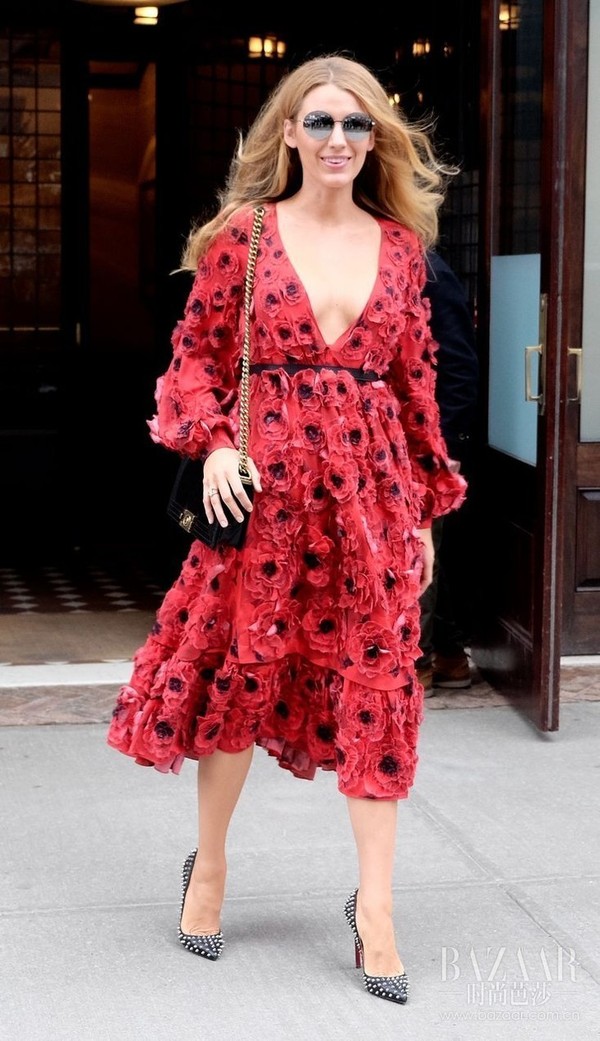 芭姐点评:大红色、深V、满身花瓣,这些普通人不敢穿上身的元素全部穿在布莱克的身上,却优雅又性感!美中不足的是鞋子上的铆钉有点不搭。