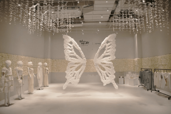 通过129,600分钟的实时记录,观察蝴蝶从卵、虫、蛹、到蜕变成蝶的过程,把蝴蝶每一时期的蜕变过程特征与结构融入到成衣服饰,从而设计出「Metamorphosis」记录型成衣系列,GCS创始人兼创意总监GemmaHoi正是这段时装之旅的开拓者(同时这组策展也曾在纽约华尔街新世贸大厦,第五大道名店街Bergdorf Goodman展出)。而这一段奇幻的经历,也成为了此次由上海老佛爷百货与国际设计师赋能空间GCS爵岸时尚联合举办的主题为「METAMORPHOSIS 蜕·变 」时装艺术静态展的灵感来源。