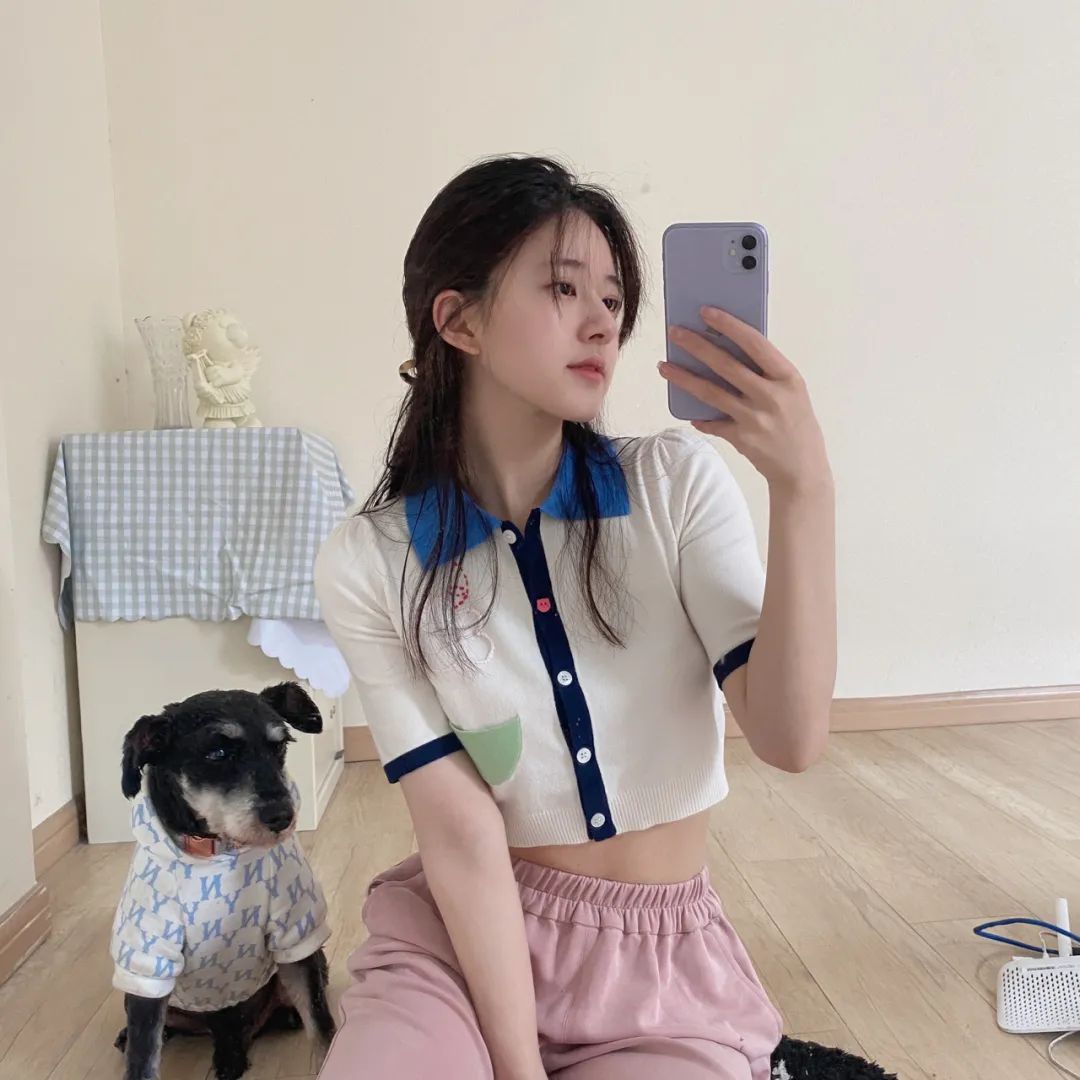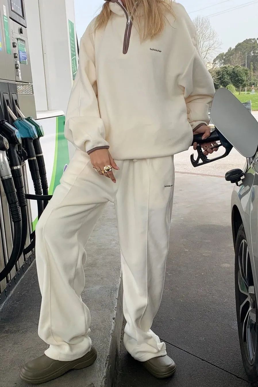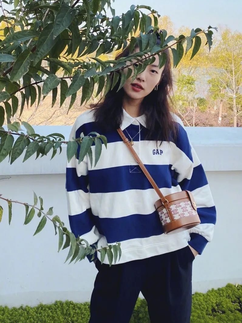一身卫衣套装出街,Polo领让卫衣多一点时髦小心机,就算单穿出门也能有精心搭配过的痕迹。
