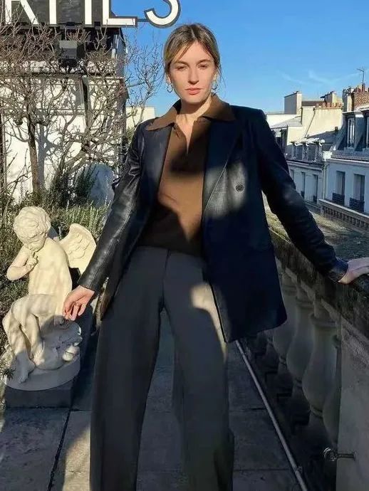 领子和外套的搭配也可以有一点特别的小心思,立领会更有男装搭配的味道,率性潇洒,不拘泥于任何流行,但它的搭配难度也比较大。相比较而言,直接将领子外翻这种方式,适用于任何款式的外套,是更加日常的穿搭方式。