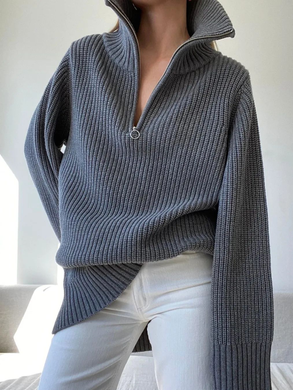 这种款式的毛衣还是与裤装更为相配,与牛仔搭配有法式的柔美,搭配工装裤和皮裤又是酷女孩的冬日耍酷必备。