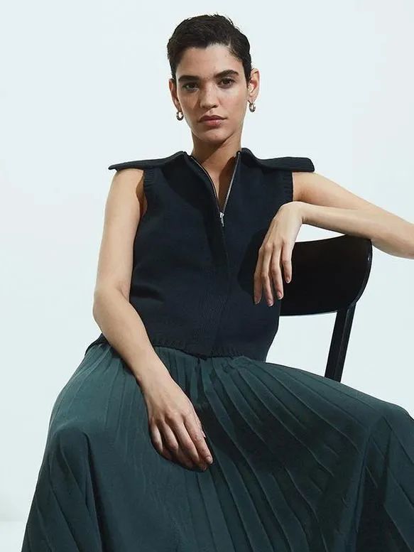 Polo大翻领在肩膀上顺着金属拉链延伸出的一个对称的三角,不管从哪个角度看都是绝美的线条勾勒,放大了Polo领的美。