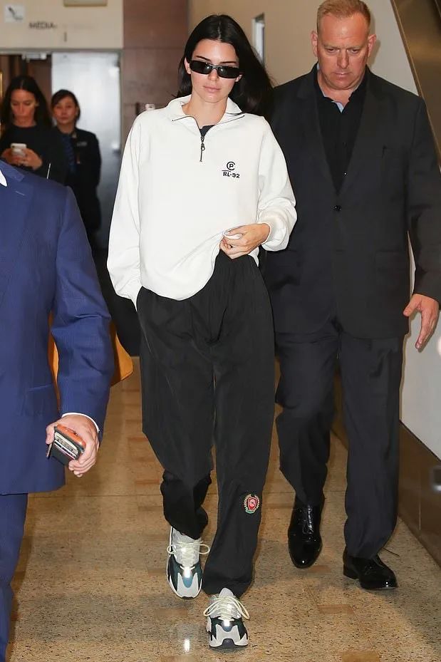 Kendall出没健身房被偷拍时,Polo领卫衣+Leggings是标配穿搭,在运动的路上也不能丢了时髦,Polo领口对于运动女孩拗造型来说功不可没。