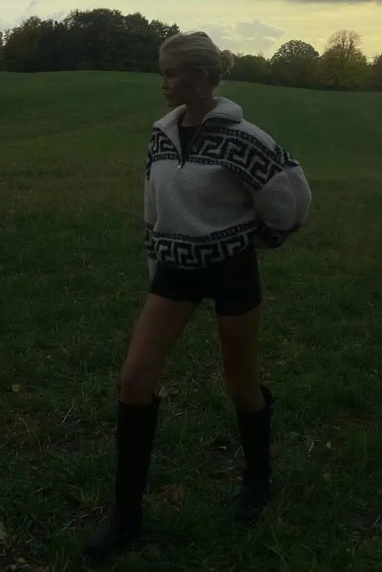 趁着最后的露腿时光,用抓绒卫衣搭配长靴性感又率性,有节制地露肤让性感变得更加高级。