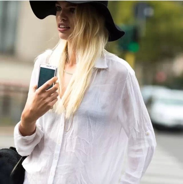 白衬衫不用芭主多说,一定是男生幻想首位的单品。解开3个扣子的位置正好在胸部上面一点,露出脖子的线条,让他不看你都难。当然咱要有点骨气,想看多,不好意思,没有!