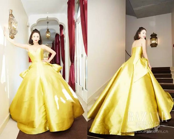 张雨绮身着Alexis Mabille 2016秋冬高定金色礼服裙亮相红毯。蓬松撑开的金色裙摆,微微弧度的中长发,美艳动人的她是不是超像《美女与野兽》中的Belle公主?