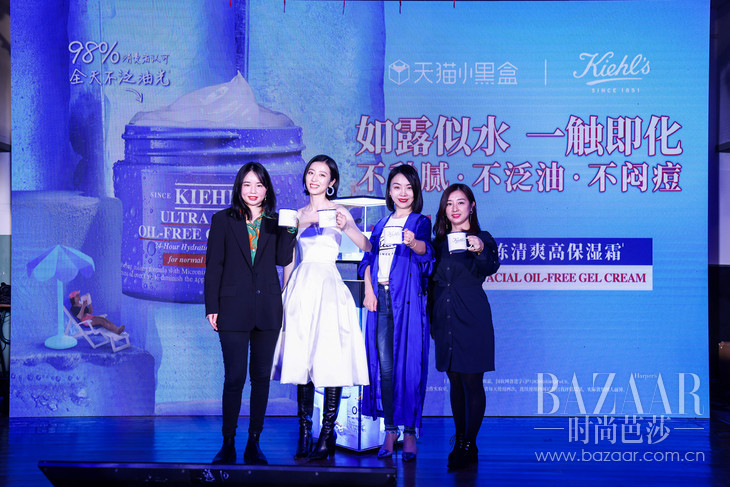 Kiehl’s科颜氏中国品牌总经理Ivy Li李琳女士与青年演员周雨彤携手天猫美妆高端线高级经理葆龄、天猫新品大快消及服饰运营负责人鲤溪共同开启小黑盒