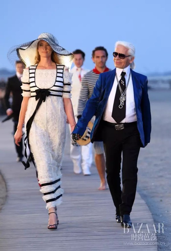 如今的Karl Lagerfeld,一把年纪了和年轻模特模携伴而行,完全无违和感。