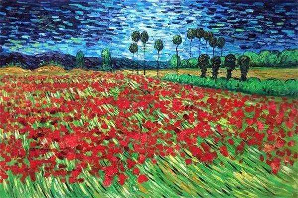 各种各样的绿色和绚丽的色彩交织在一起,让人顿生一种饱满的生命张力感,相比于秋天,显得浓烈极了。而这样的感受,同样出现在看梵高的画时,静默而又热烈。