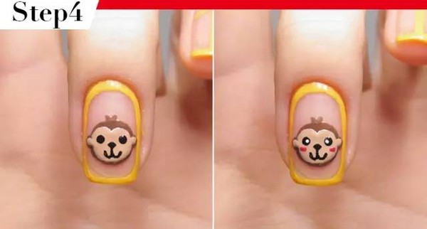 最后,画出小猴子的五官,再给他涂上两抹粉嫩嫩的腮红,萌萌哒小猴子美甲就完成啦!