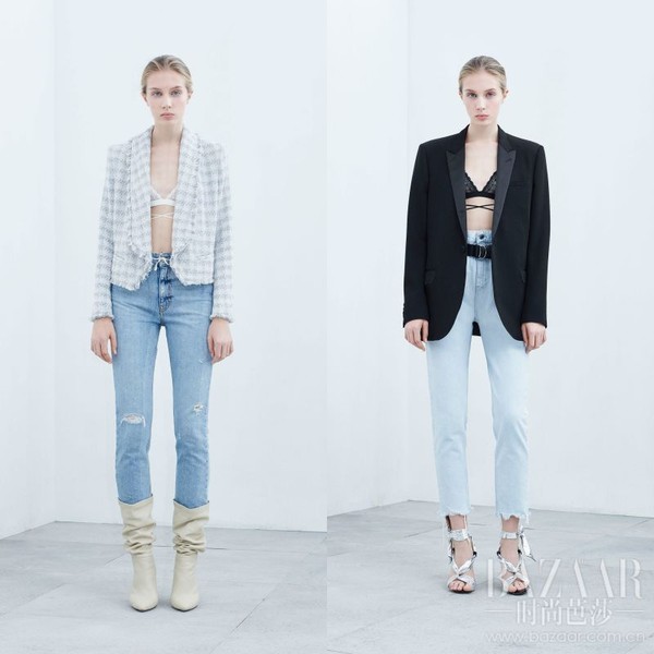 休闲百搭的牛仔外套可以让你的内衣外穿变得理所当然,要想显腿更长,还得要短打的牛仔外套和拖地的长裤。