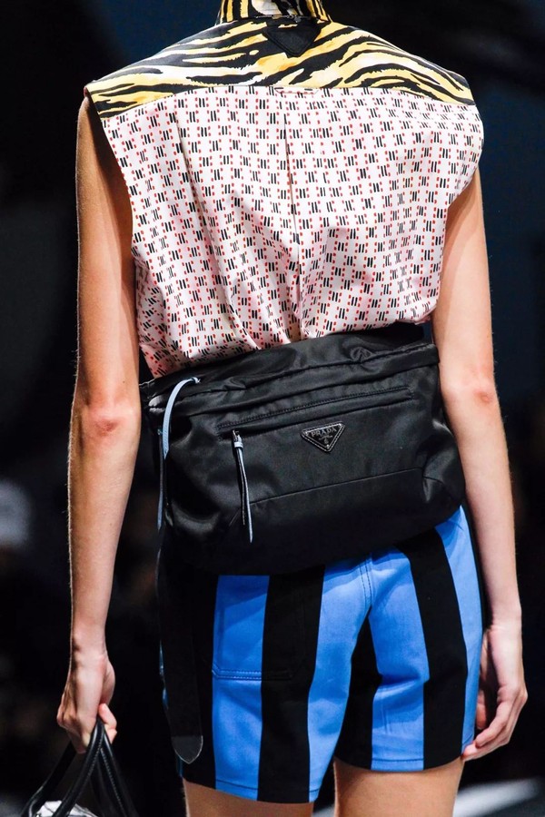 Prada的2018年春夏系列在全面回顾品牌经典印花的同时,也将曾经风靡一时的尼龙包带了回来。与过去相比,本季的Prada尼龙腰包个头显然大了许多,足以放下随身的所有零碎物件。但轻软的材质让系在腰后的它成了一个舒适又时髦的“储物靠垫”。Marc Jacobs和Balenciaga也延续了怀旧的尼龙材质,前者采用了青春甜美的糖果色系,而后者则完全拷贝了二十多年前的模样。