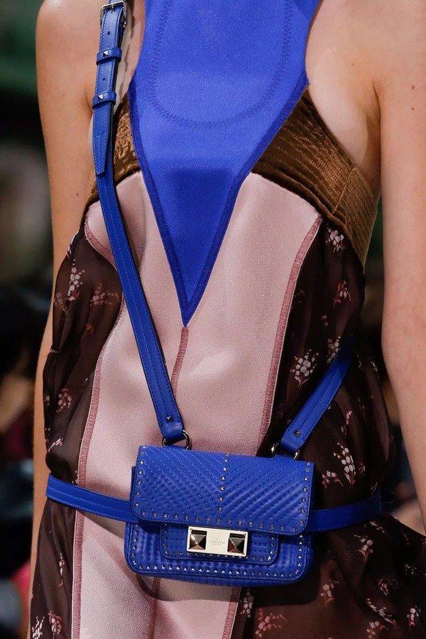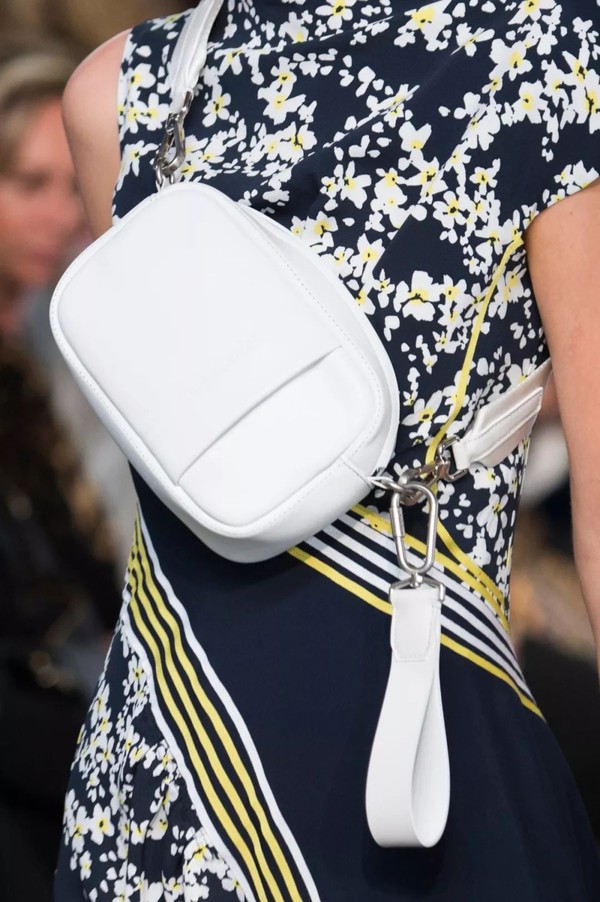 而时尚也是轮回,转眼,在户外运动时装和怀旧风潮的共同推动下,自2015年开始,更多“迷你版”手袋变成了可以别在腰间的配饰,并在今年春天让腰包重新回归时髦队伍。这一次,它们不在新材质、新形状和新背法的演绎下,焕发出了令人欲罢不能的全新魅力。