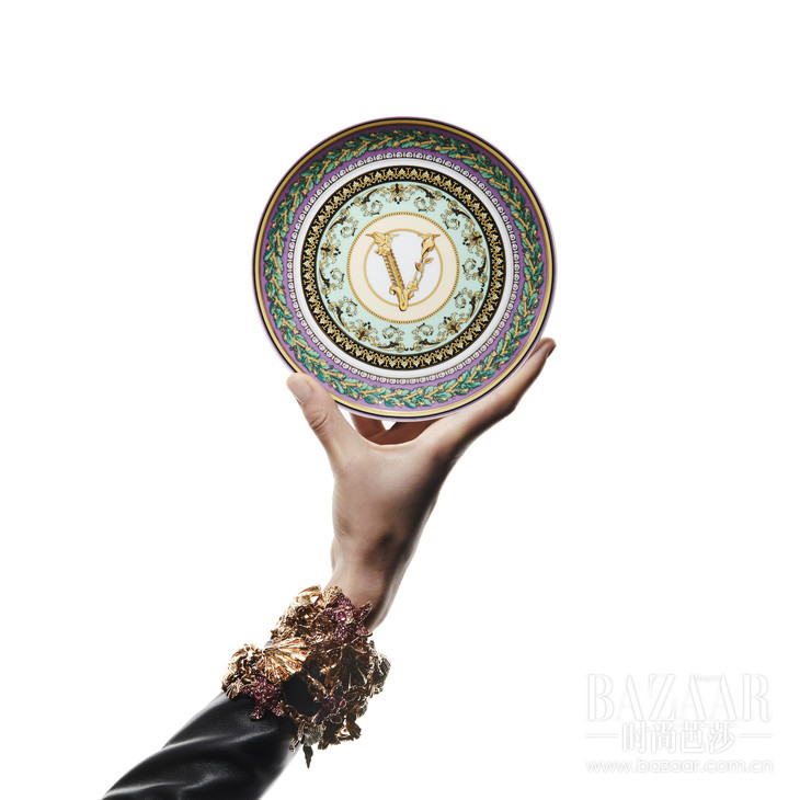 Rosenthal与Versace合作推出的Barocco Mosaic系列餐具颂扬了Versace的品牌传统。四款经典印花图案组成充满Versace 特色的设计。亮丽夺目的色彩充满喜悦与活力——粉紫色和柔和的薄荷绿色,搭配典雅金色,亦令人眼前一亮。