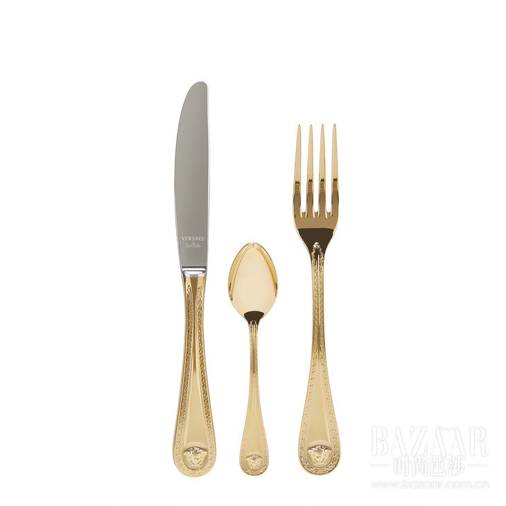 全新的刀叉餐具以经典希腊回纹饰边,印有经典 Medusa 图案,优雅出众。