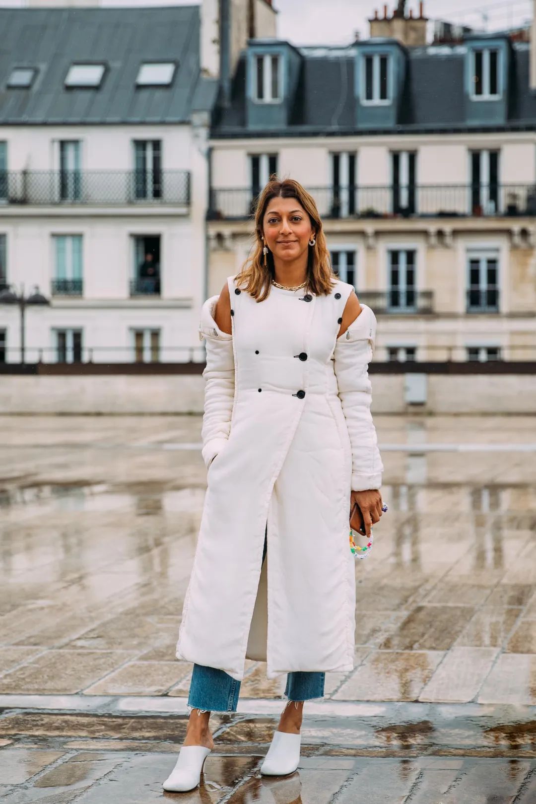 视觉上把手臂分节,除了十分有未来感,又不容易显胖。