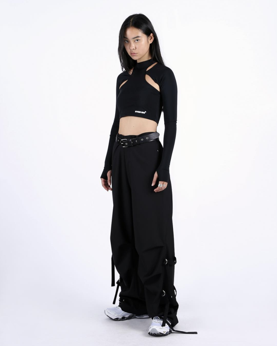 去哪买?Black Pink常穿的机能风品牌Hyein Seo,就出了很多叠穿的腋下镂空上衣。