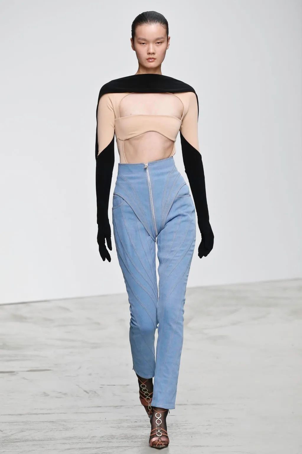这种胯部镂空的成衣可以说是抓住了胯部对女性性感的意义,身材轮廓也都出来了。