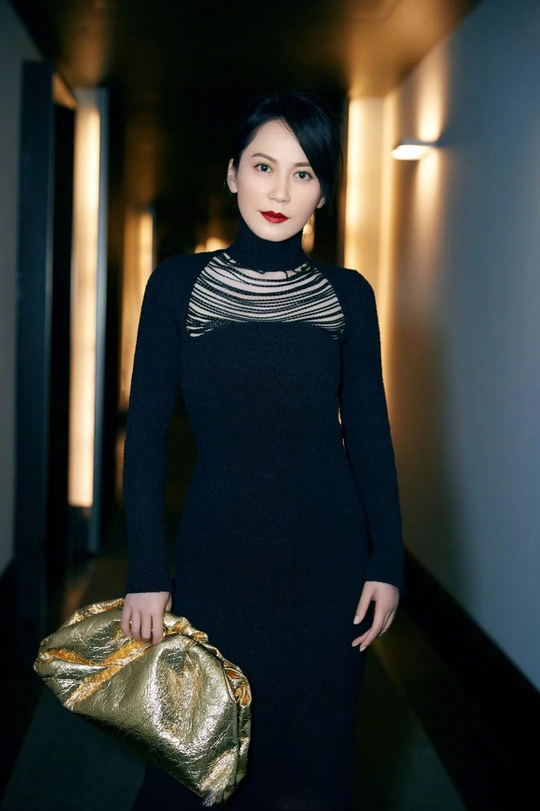 前段时间,俞飞鸿就以一套Bottega Veneta高领黑裙造型示范了克制而不欲的性感,胸前的编织装饰也很是特别。