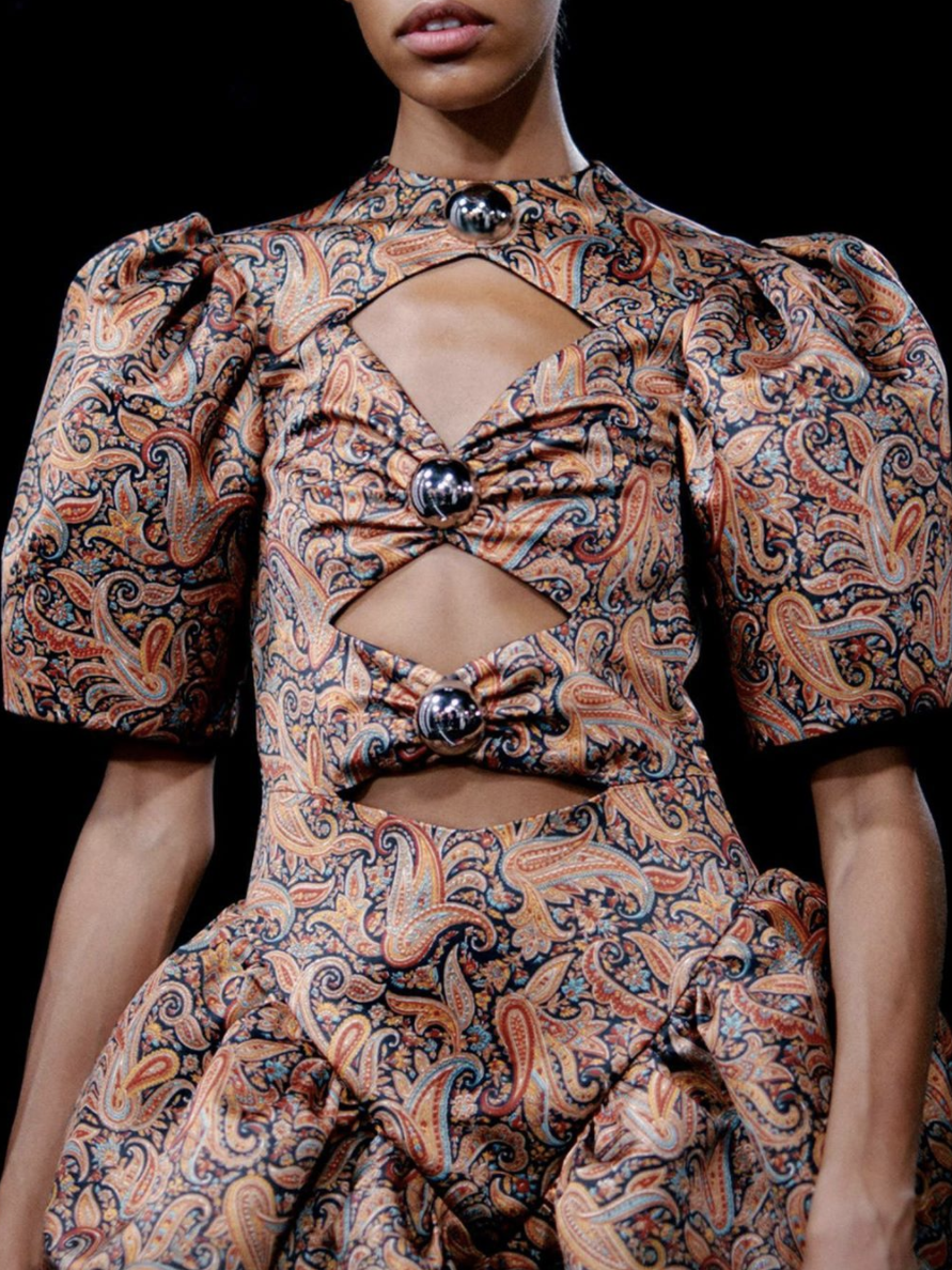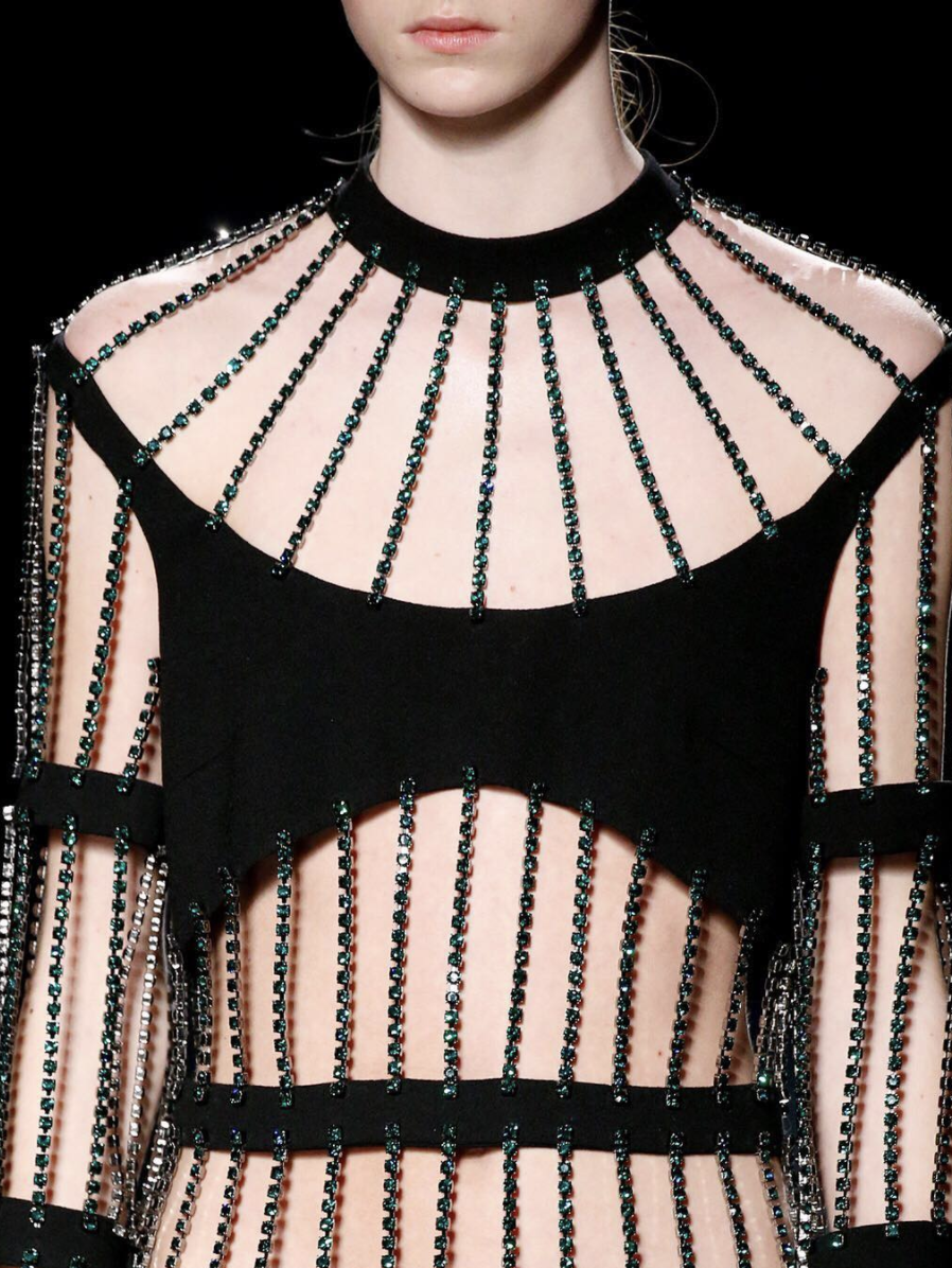 胸前镂空则应该算是最主流的剪裁露肤套路之一了,今年的秀场上也自然不会缺少⬇️