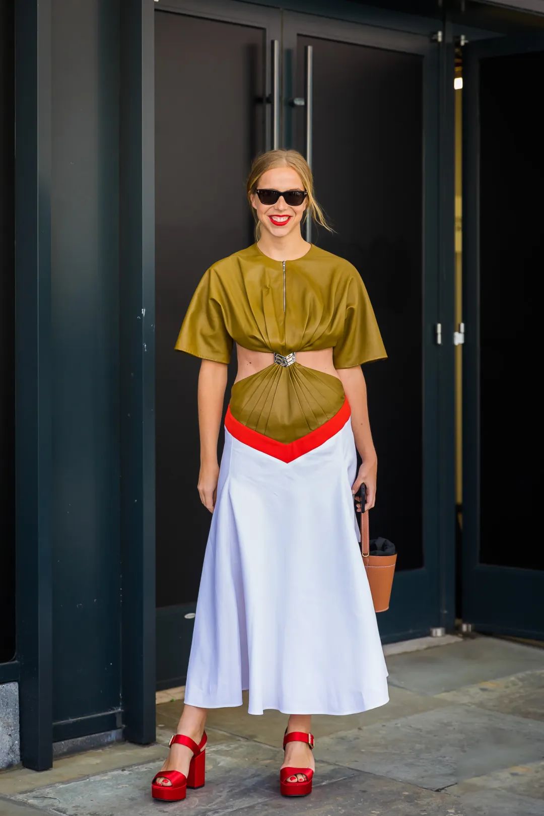 除了基本的半露肩膀款,腰身肚脐短款与膝盖开口款等操作,今年更流行一些出其不意的镂空设计。