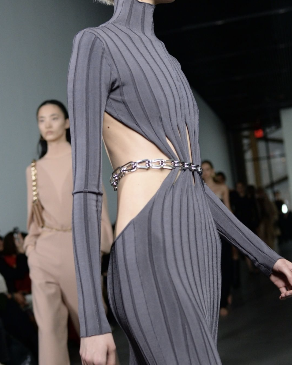 而露出某一身体部位的剪裁手法也常被称作“Minimalist Cutout”,在近几季颇有爆发的趋势。