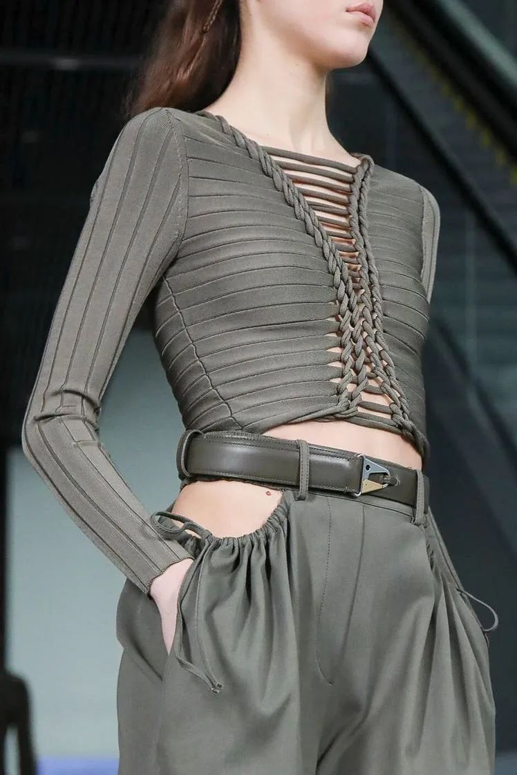 Bottega Veneta的胸前镂空成衣,面积和形状都跟别的品牌有所不一样,