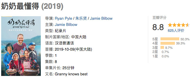 8集,8个地方(安徽、浙江、广东、海南、广西、贵州、四川、云南),16位奶奶,她们都传授给这个英国小伙子一道她们最懂得的美食。