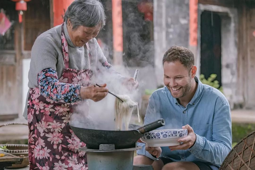 他千里迢迢跑到中国,却扎根农村,在村子里跟着奶奶们学习做菜。