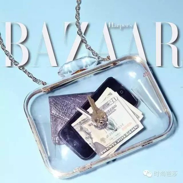 其实早在二战后,Lucite这种工业材质就在时装配饰界的地位日益凸显,时装品牌运用这种材质制造出手工雕刻的、颜色明艳的配饰。这种好像塑料材质的包包分为两种,先给大家介绍硬朗的这种叫做Lucite包,透明合成树脂或塑胶玻璃的材质,干净澄透。就是我们平时觉得像“砖头”一样的,这类包包是明星达人们红毯和参加活动的心头好!