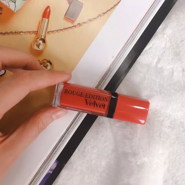 刚打开的时候发现这是一支“死亡”荧光色,有点害怕。但上嘴之后,发现它是蜜桃橘,也太可爱了吧!质地非常顺滑,像奶油,涂上唇后就是哑光丝绒的效果,并没有想象中的荧光。非常适合少女们哦~