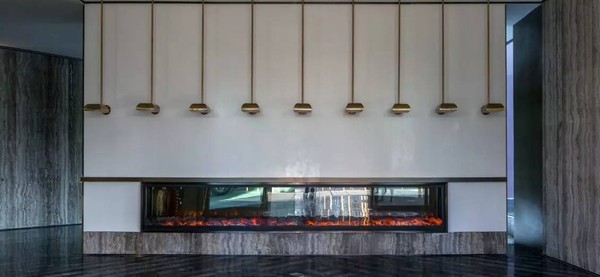线条构成的弧形水晶灯,其灵感来源于一轮新月,其更重要的意义是“月光下,竹林处”的另一种解读