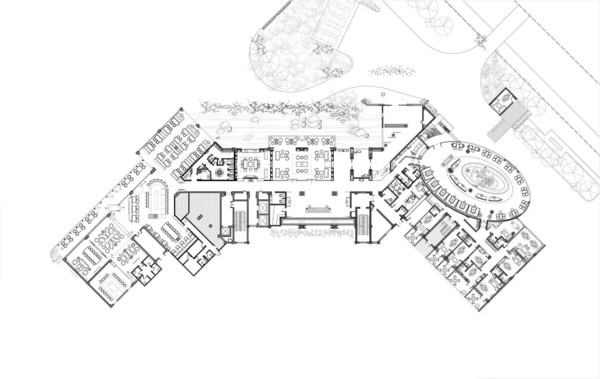 散点式、全景性的造景手法,将“依山傍水”的概念完全融入到整体空间构成中,将东方意境巧妙融入现代结构,犹如“景中有画,画由心生”之境