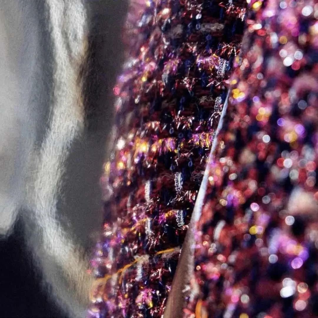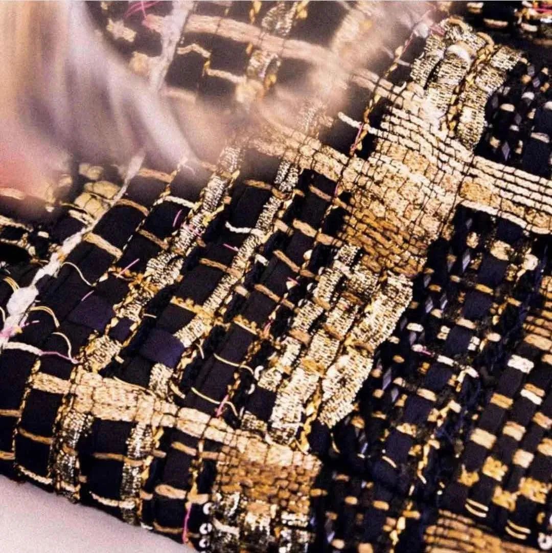 Lesage刺绣坊、Montex刺绣坊与Lemarié山茶花及羽饰坊、Goossens金银饰坊全部投入到对斜纹软呢的创新制作中,亮片、水钻、宝石和珠子等元素都为其增添华美的特性。