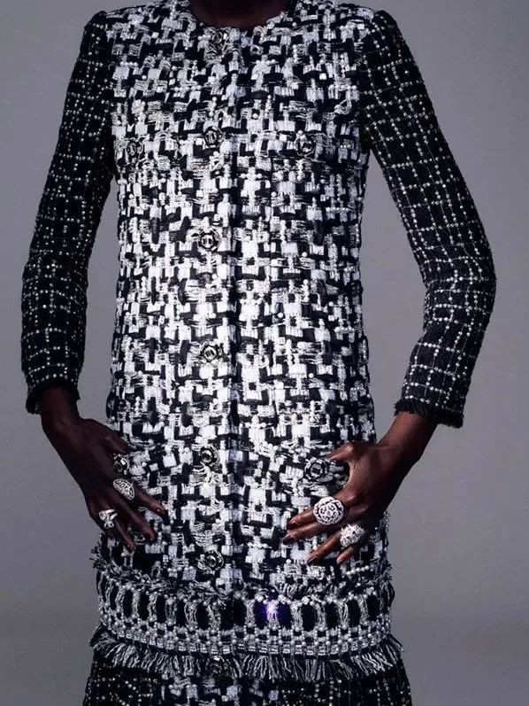 经典而又多变的斜纹软呢这次依然被 Virginie Viard完美演绎,无论是经典廓形套装还是⻓款外套抑或是三件层叠式套装,都呈现出斜纹软呢作为CHANEL代表元素的持久生命力。