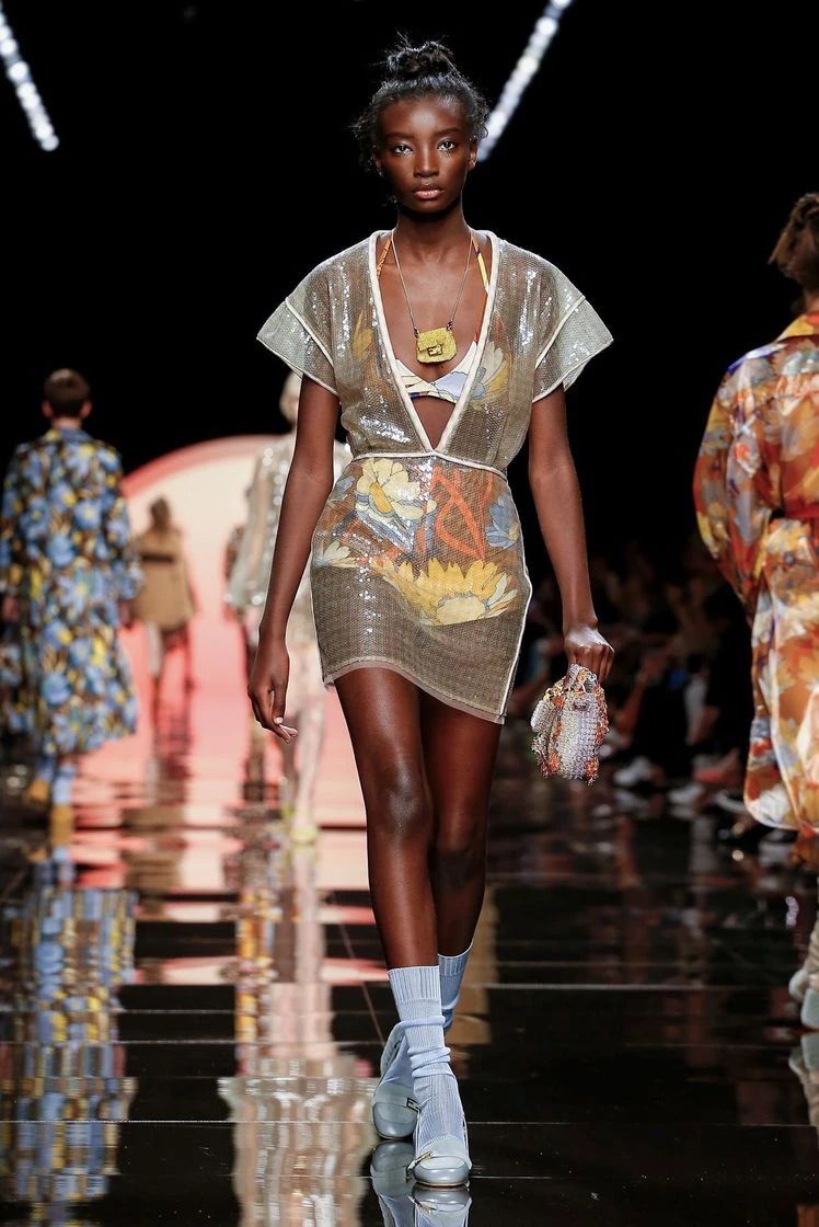 伴随着开场模特脚尖的那一抹粉色,Silvia Venturini Fendi对Fendi的“改造”便可窥见一般。在女性设计师的视角下,更多的少女元素和轻快的色调加入到这一季的设计中,这个经典的百年品牌将再一次变得年轻起来。
