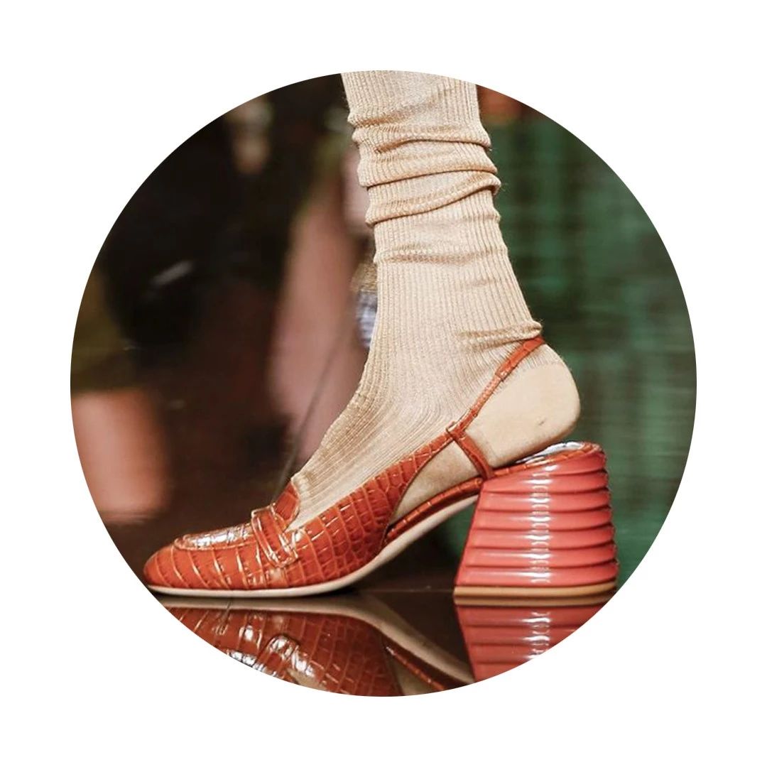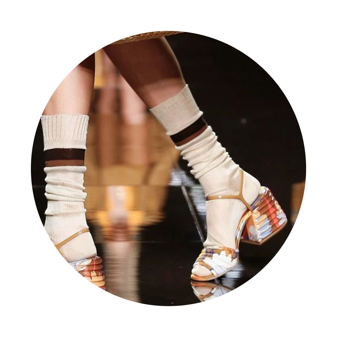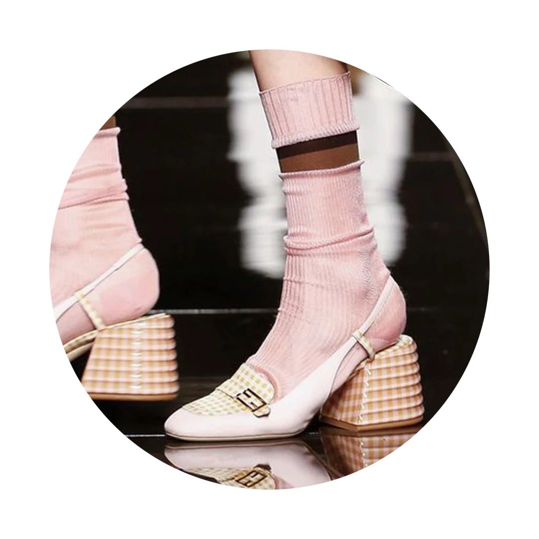 本季鞋履方面也延续了浪漫和优雅的气息,鳄鱼纹、格纹以及花朵印花与高跟露跟便鞋及凉鞋结合,颇具雕塑感的鞋跟设计,将甜美与摩登相互融合,给我们奏了一曲春之交响乐。