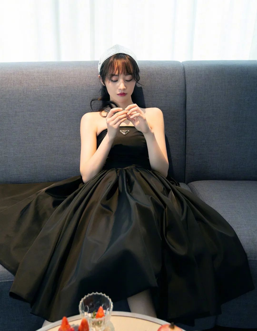 这周的郑爽是“大明星”营业了,身穿一袭Prada抹胸小黑裙的她让我们知道了什么是精致的Country Style,太有《罗马假日》赫本的气质了。